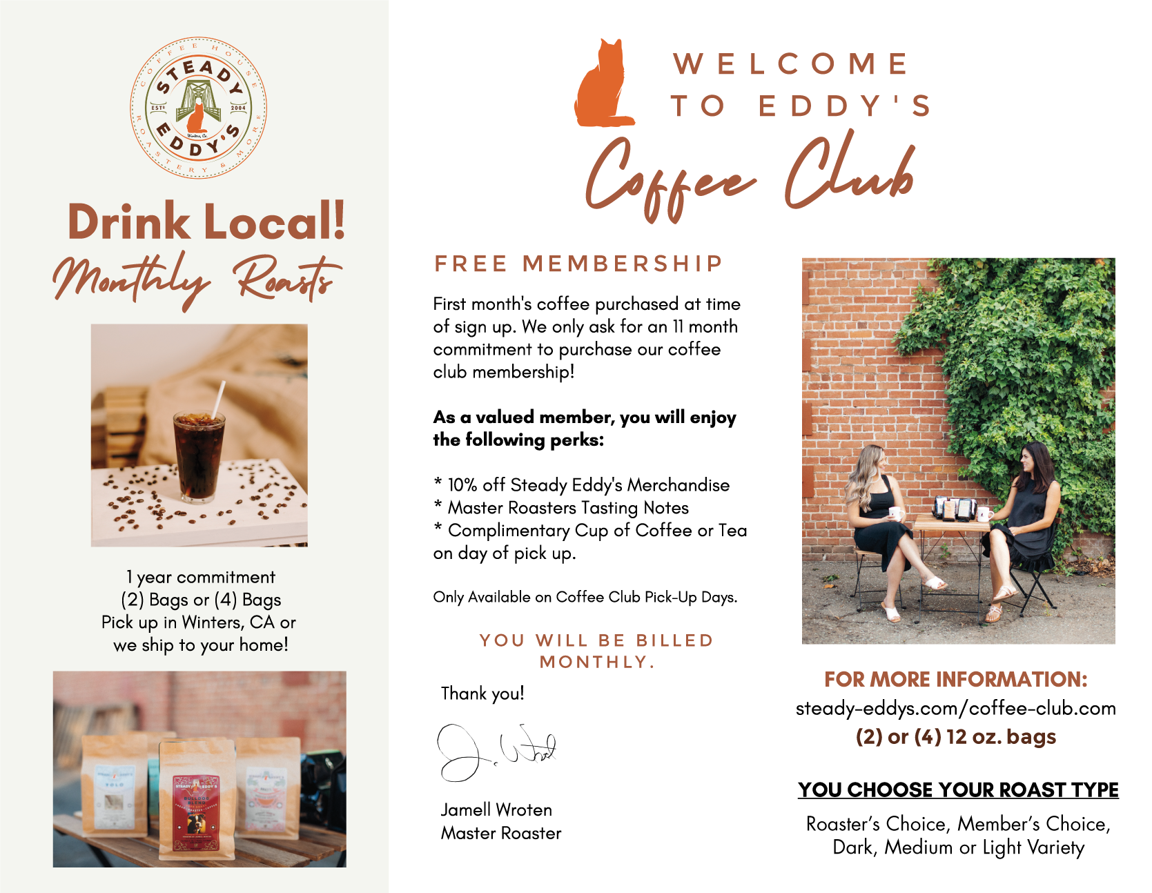 - Master Roaster, Jamell Wroten, will choose the flavor of the month or you can choose your favorite roasts!